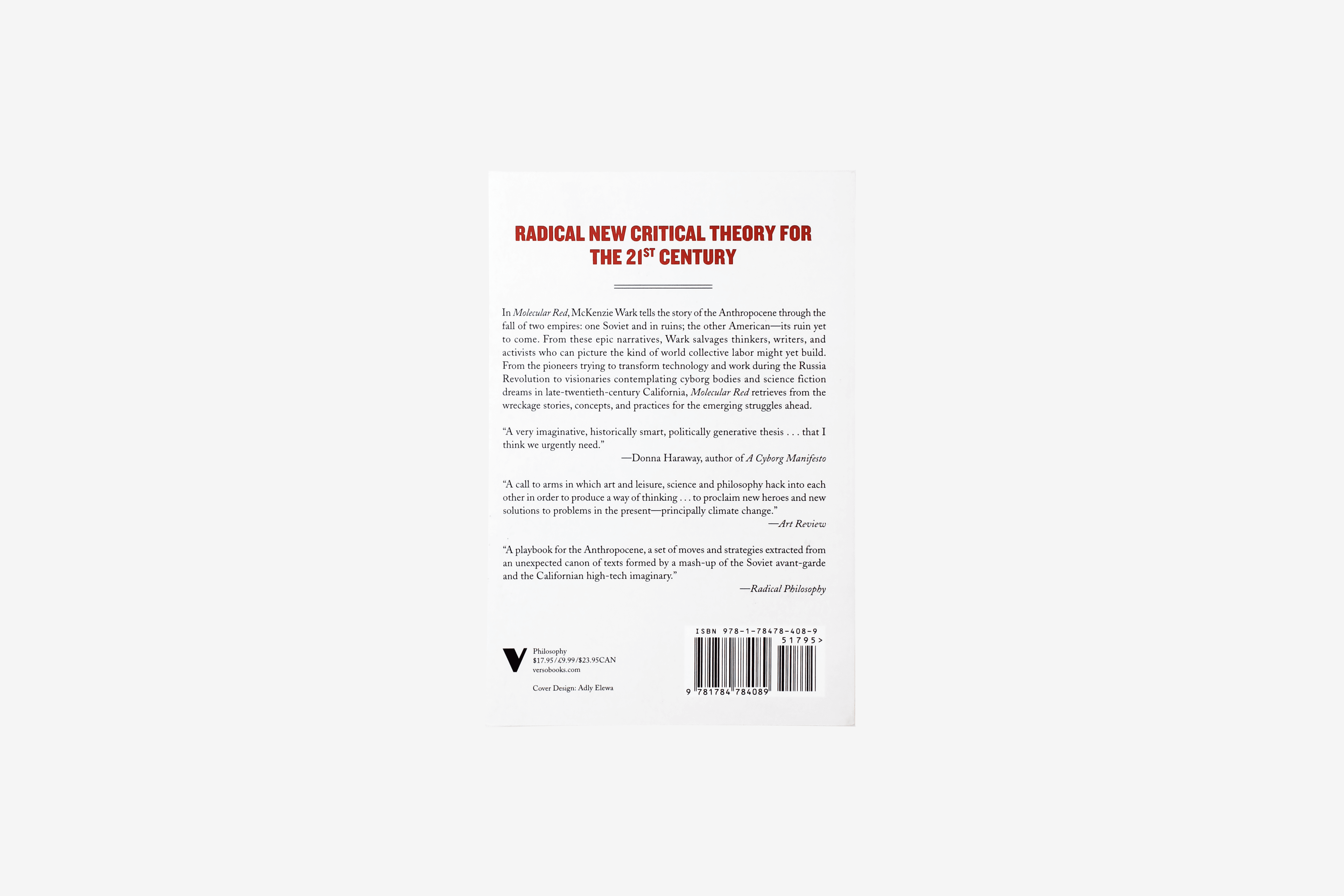 The Soviet experiment emerges from the past as an allegory for the new organizational challenges of our time. From deep within the Californian military-entertainment complex, Wark retrieves Donna Haraway’s cyborg critique and science fiction writer Kim Stanley Robinson’s Martian utopia as powerful resources for rethinking and remaking the world that climate change has wrought. Molecular Red proposes an alternative realism, where hope is found in what remains and endures.
