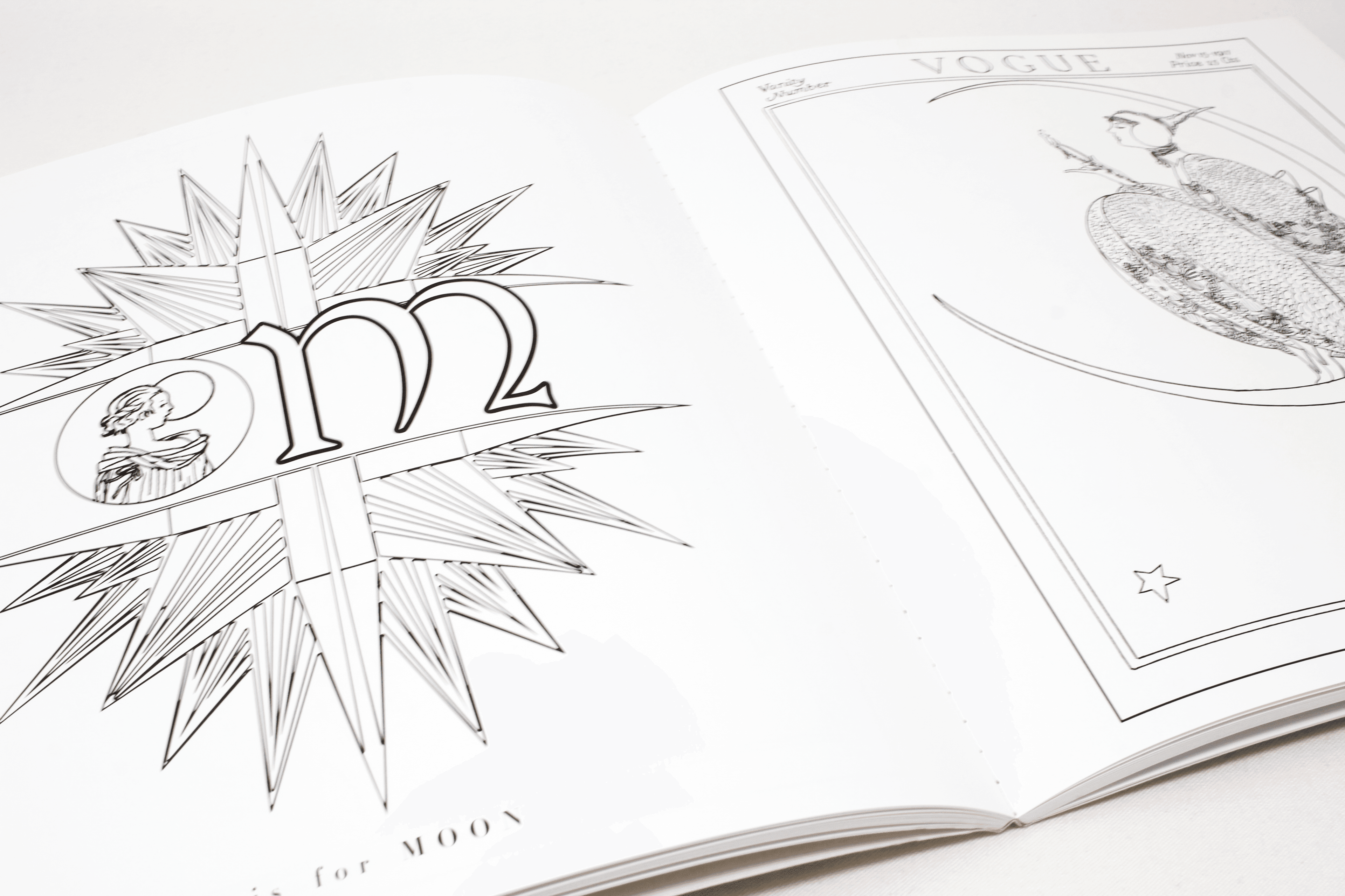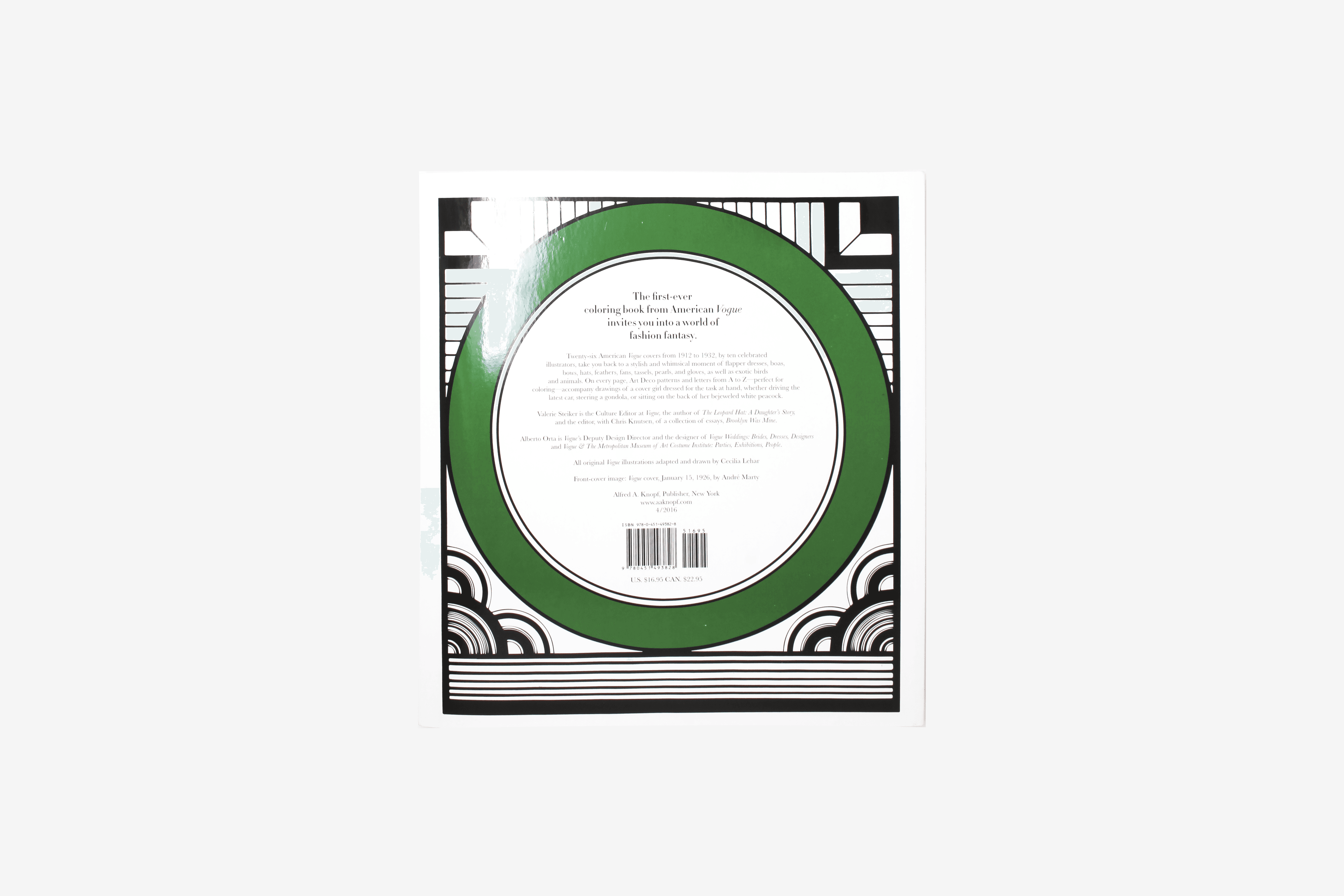 Twenty-six archival magazine covers from 1912 to 1932, by ten celebrated illustrators living here and abroad, take you back to a more playful and whimsical moment of boas, bows, hats and headpieces, fans, pearls and gloves, and even exotic animals. Coloring book fans of all ages can try their hand at the Art Deco patterns and letters from A to Z and the lively drawings of women dressed for the task at hand, whether it is driving their own car, pruning morning glories in the garden, feeding a dragon, steering a gondola, sitting on a crescent moon, perched on a peacock or riding a zebra—side-saddle, of course. This is the Vogue woman as liberated, stylish, and always dressed for adventure.
