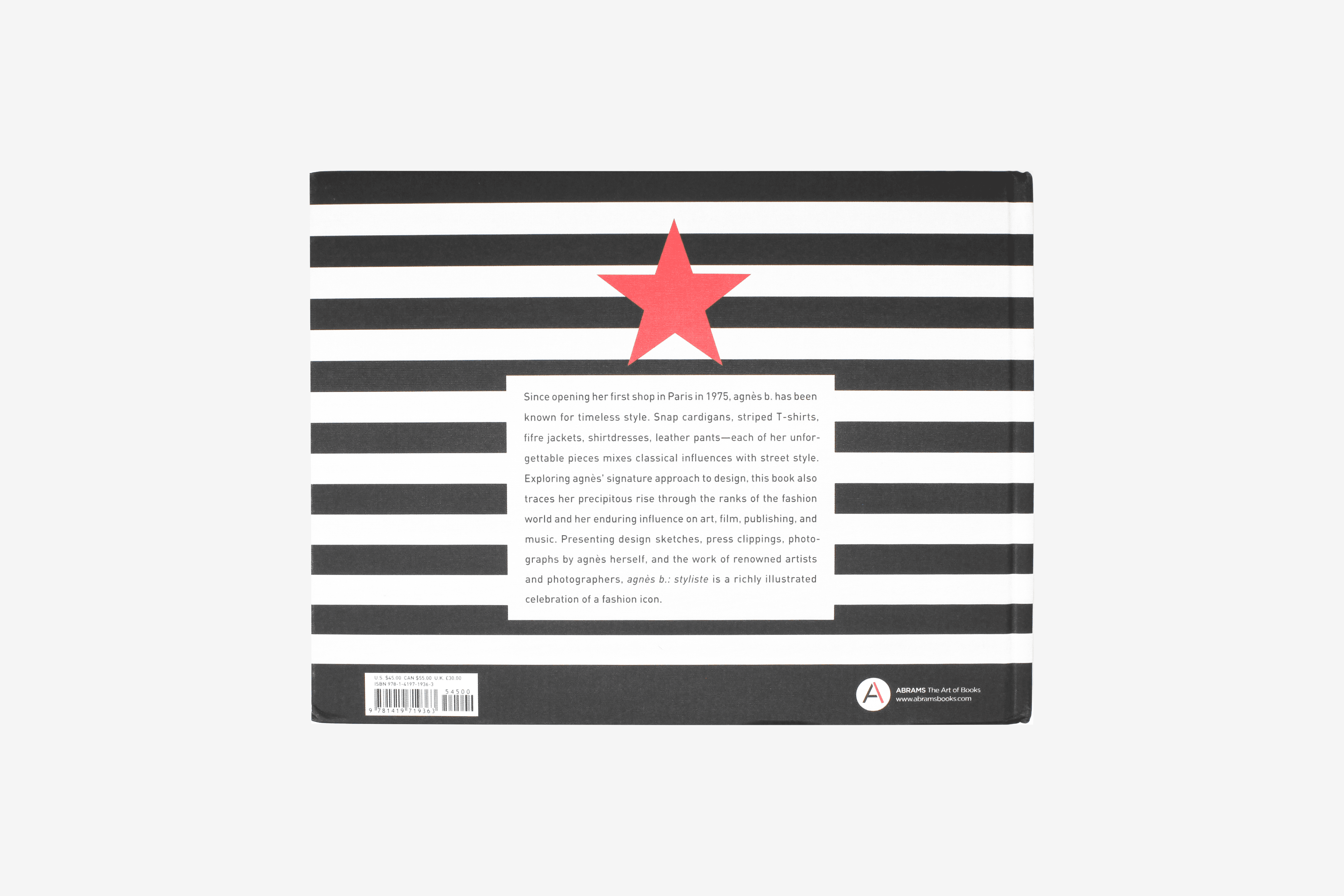 Since opening her first shop in Paris in 1975, agnès b. has been dedicated to creating timeless designs. Snap cardigans, striped T-shirts, strapless dresses, mini skirts, leather pants—each of her unforgettable pieces mixes classical influences with street style. This richly illustrated clothbound book explores her signature approach to design, the history of the brand, and her continuing influence, which extends beyond fashion to the worlds of art, film, publishing, and music. Presenting design sketches, press clippings, photographs by agnès b., and the work of photographers such as Peter Lindbergh, Dominique Issermann, Ellen von Unwerth, Bruce Weber, Gilles Bensimon, and Jean-Baptiste Mondino, agnès b.: l'histoire celebrates the complexity and creativity of the agnès b. universe.