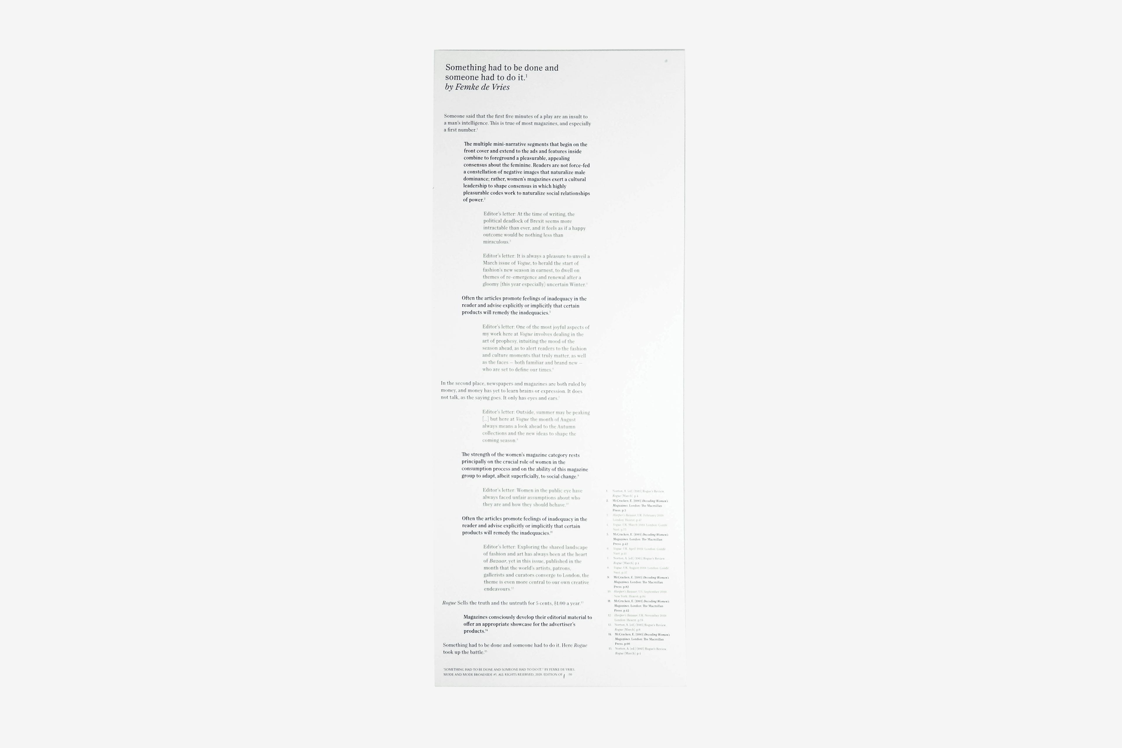 ‘Something had to be done and someone had to do it broadside’ by Femke de Vries for Mode and Mode issue 8.
