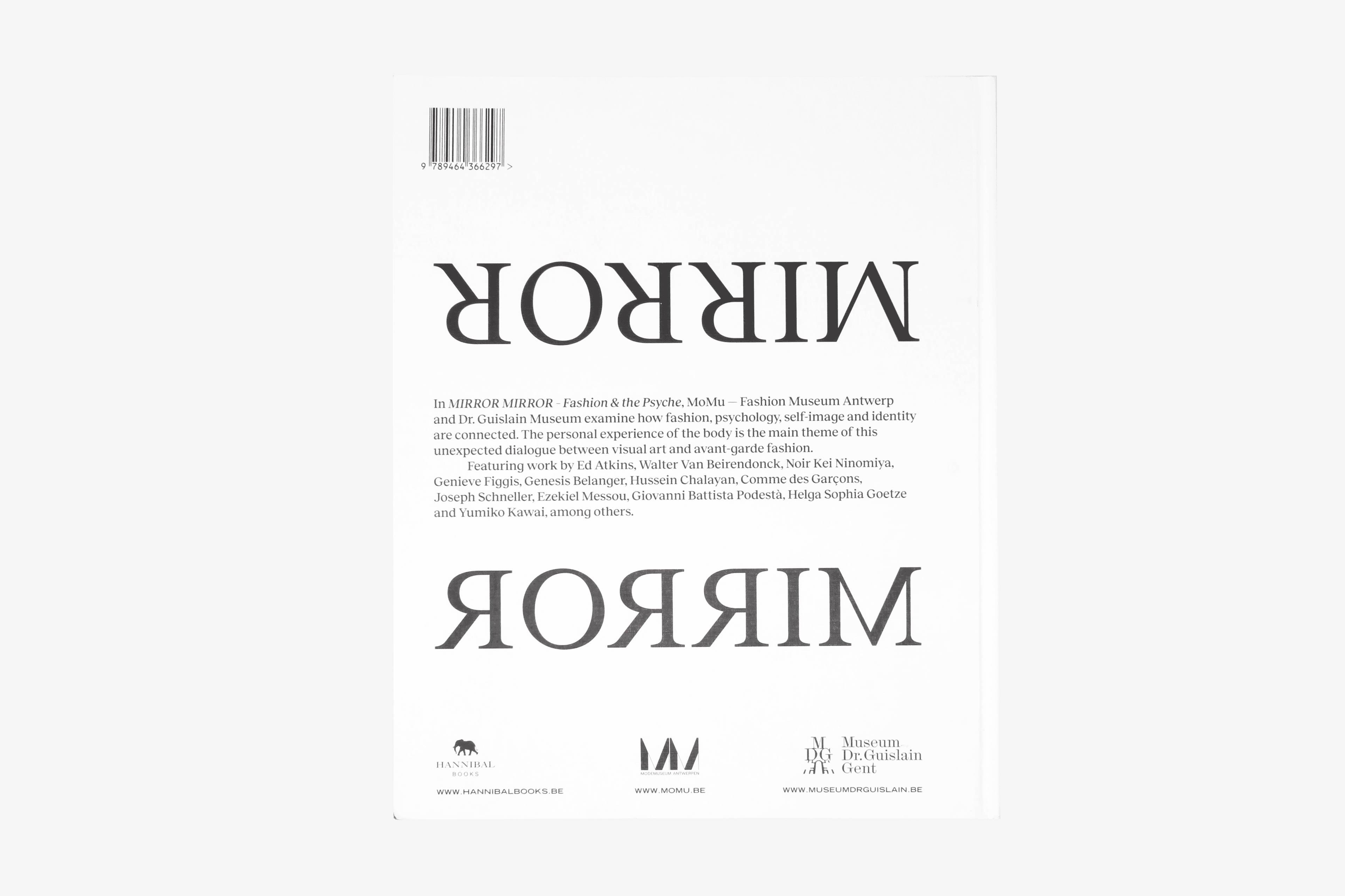 Publication accompanying the exhibition Mirror Mirror: Fashion & the Psyche at MoMu Fashion Museum, Antwerp and Dr. Guislain Museum, Ghent from 8 October 2022 to 26 February 2023. Mirror Mirror: Fashion & the Psyche examines how fashion, psychology, self-image and identity are connected. The personal experience of the body is the main theme of this unexpected dialogue between visual art and avant-garde fashion. Featuring work by Ed Atkins, Walter Van Beirendonck, Noir Kei Ninomiya, Genieve Figgis, Genesis Belanger, Hussein Chalayan, Comme des Garçons, Joseph Schneller, Ezekiel Messou, Giovanni Battista Podestà, Helga Goetze and Yumiko Kawai, among others. With textual contributions by curators Yoon Hee Lamot, Elisa De Wyngaert, Mara Johanna Kölmel, Lucy Moyse Ferreira, Monika Ankele and Renate Stauss.