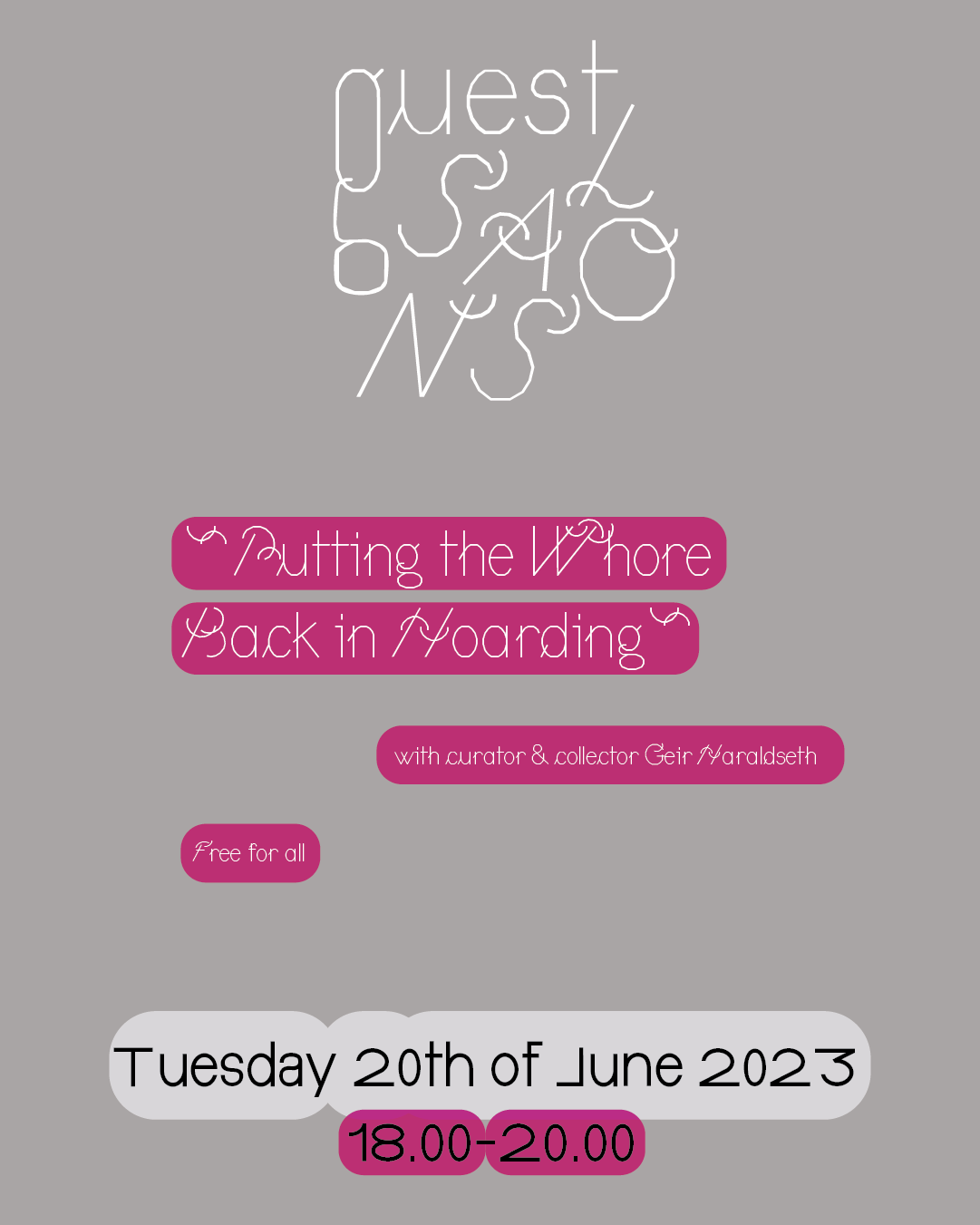 Guest Salons is an active meeting point for free conversations around and beyond fashion, once a month at International Library of Fashion Research. Our inaugural salon ‘Putting the Whore Back in Hoarding' is hosted by curator and collector Geir Haraldseth on Tuesday 20th of June at 18.00-20.00.