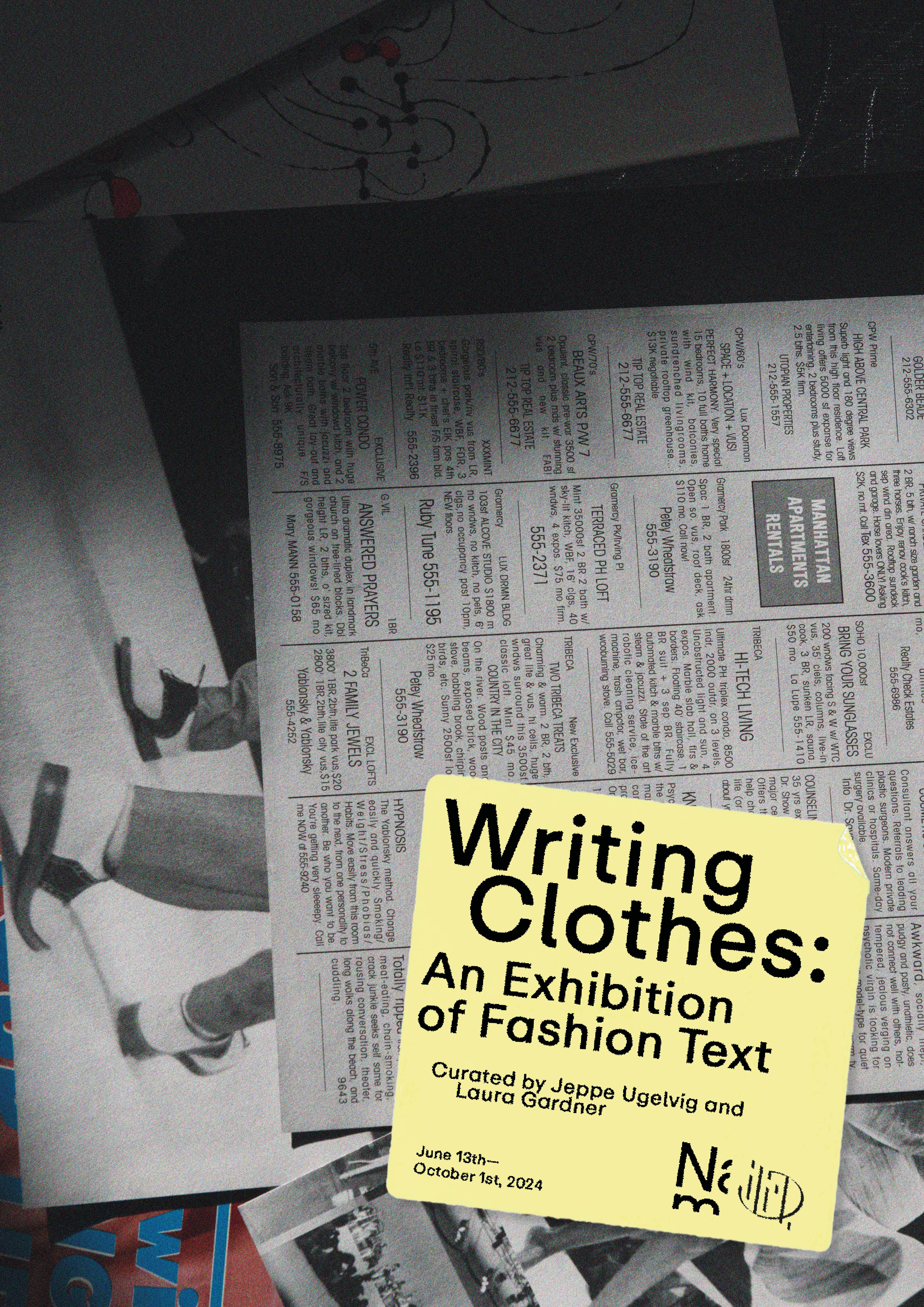 'Writing Clothes: An Exhibition of Fashion Text', curated by Jeppe Ugelvig & Laura Gardner, is an exhibition that explores fashion as constructed through text, language, and writing.